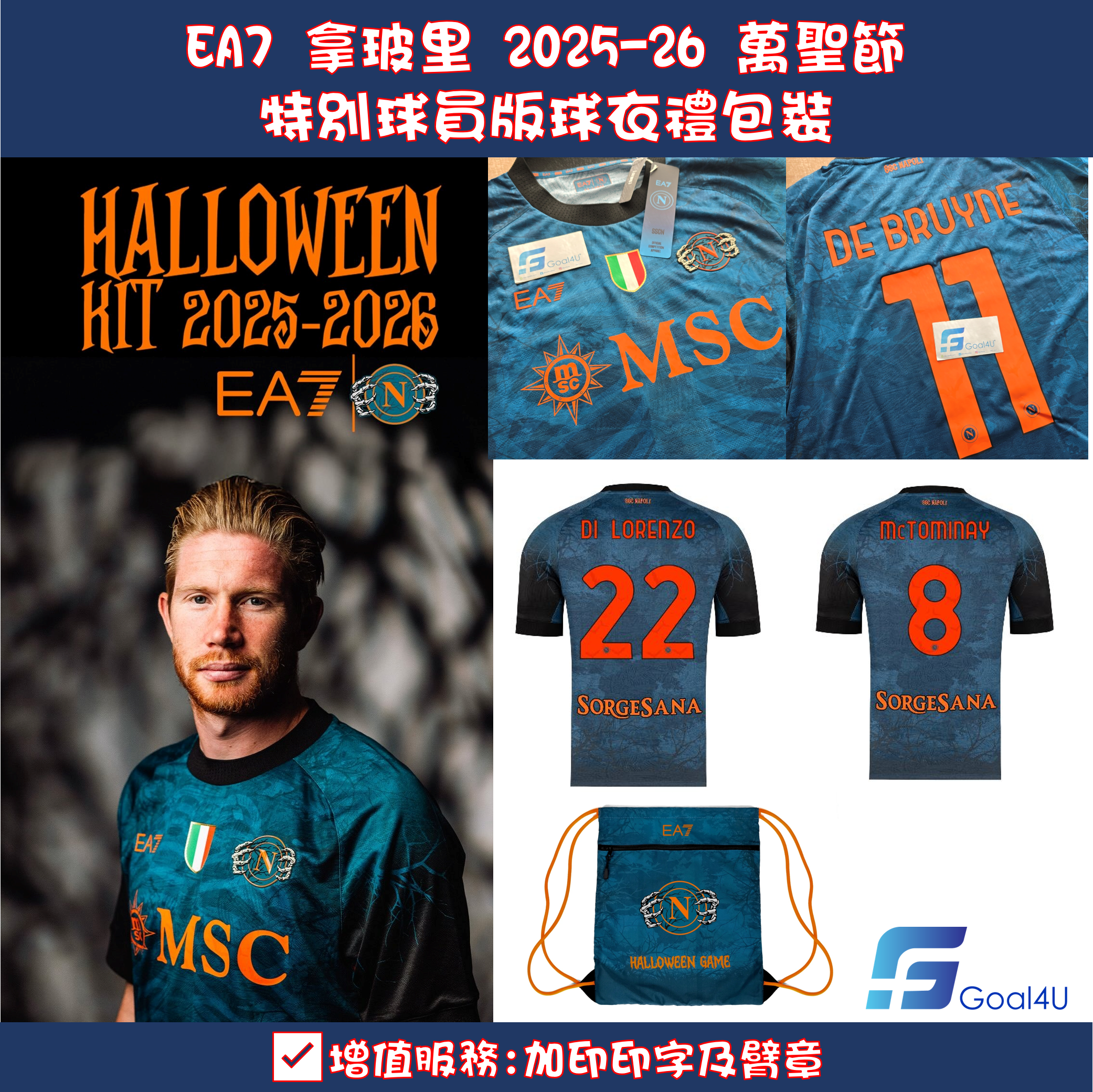 🎃👻 EA7 Napoli 拿玻里 2025-26 萬聖節特別球員版球衣禮包裝 (可加球員印字)