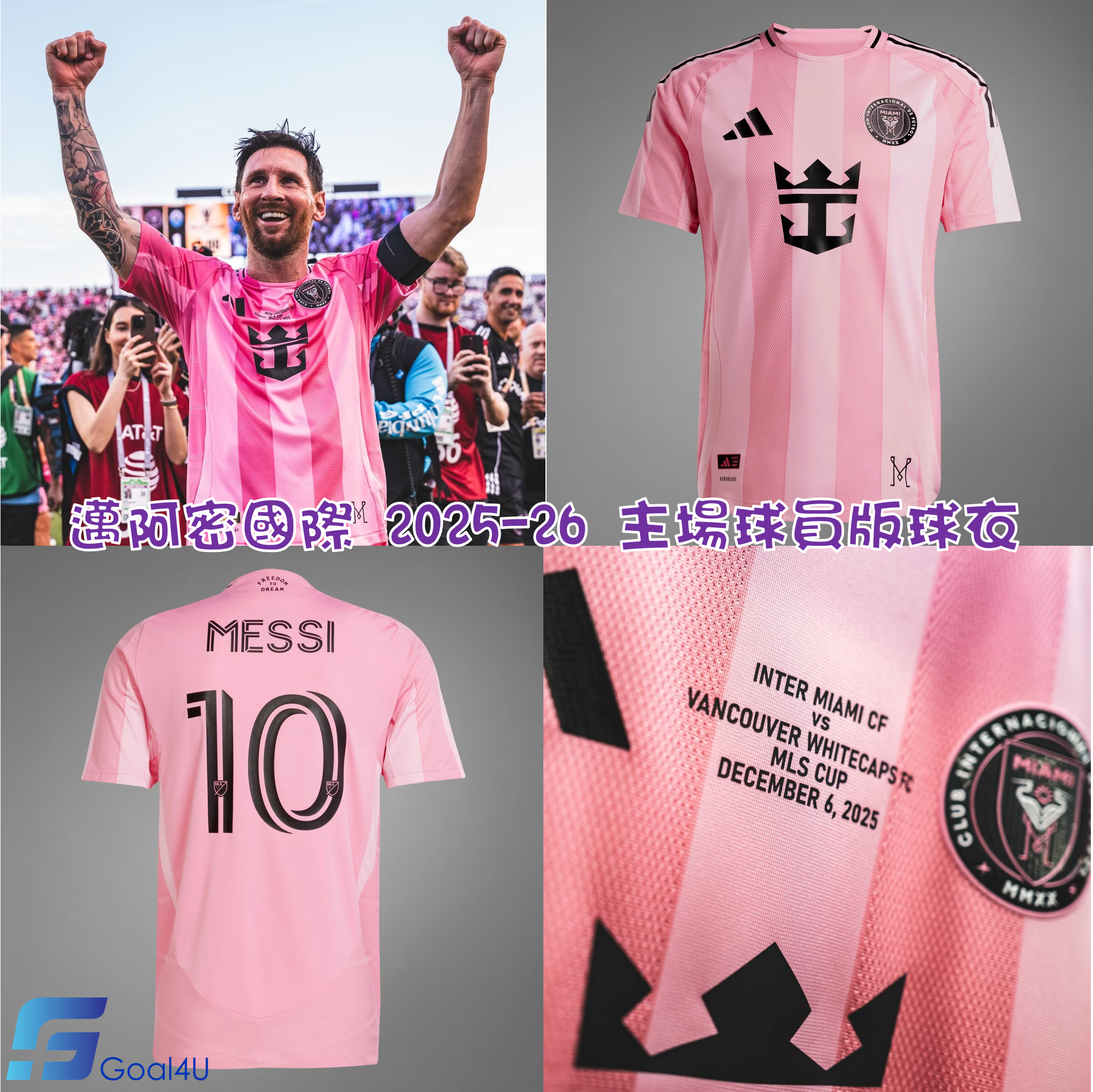 🏆美職聯總冠軍戰衣 Adidas MLS Inter Miami 邁阿密國際 2025-26 主場球迷版球衣 (連MESSI印字) JI6817
