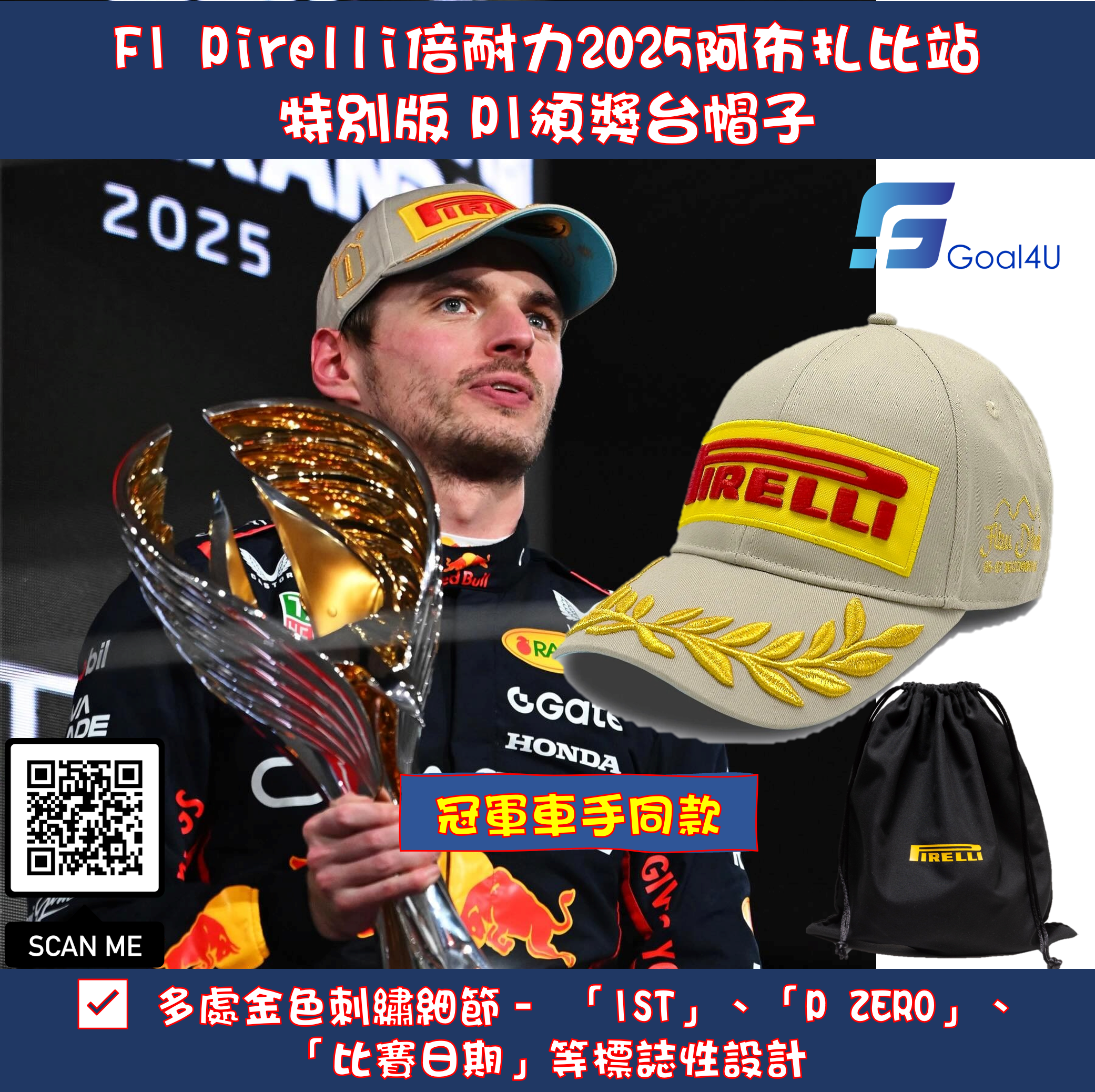 ✨🏎️ **沙漠光影 F1 Pirelli倍耐力 2025 阿布扎比站特別版 P1頒獎台帽子