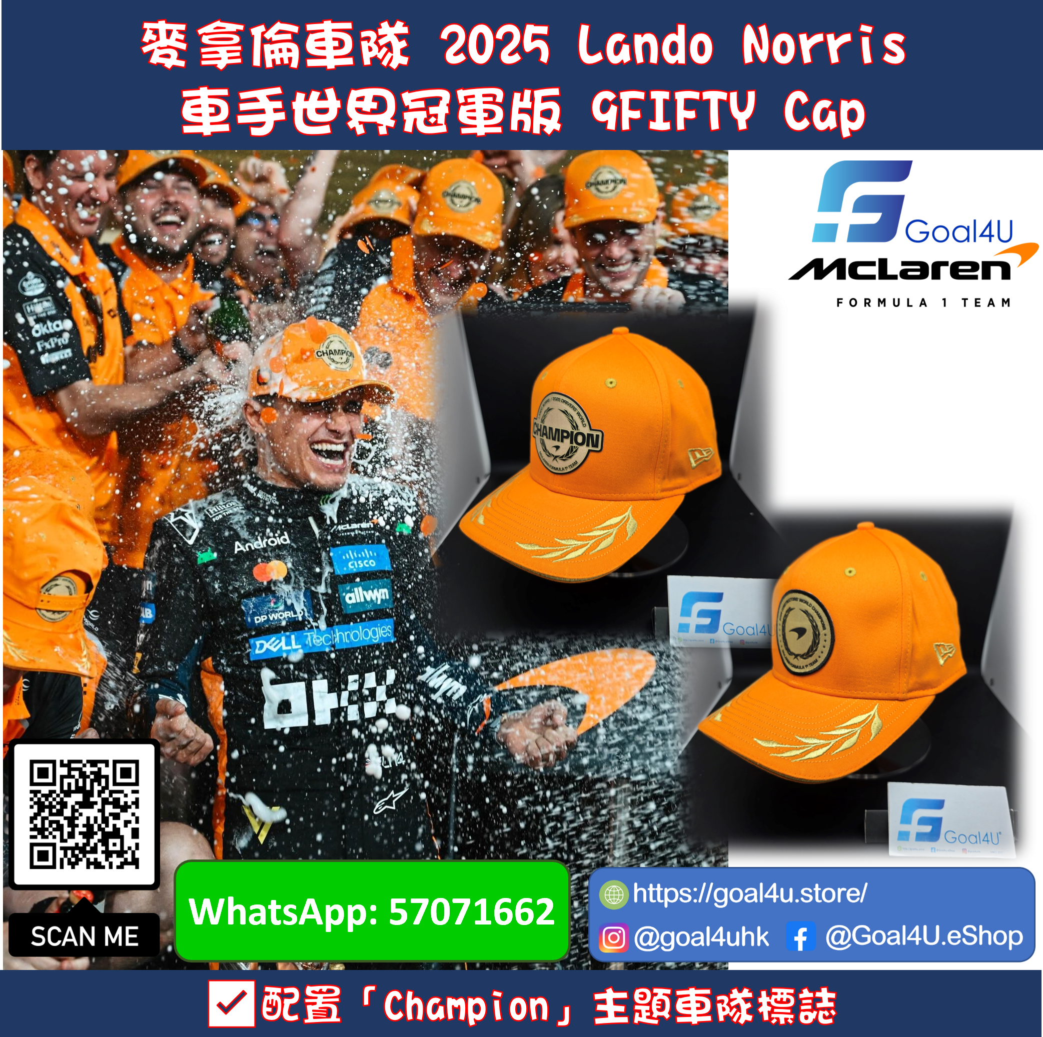 車手世界冠軍版現貨*1,車隊冠軍版約30天到港,敬請留意 🧡🏆 **【McLaren 車隊 Lando Norris|2025 世界冠軍車手版 9FIFTY Cap】** 以經典橙色呈現 2025 賽季的榮耀時刻,這款 **McLaren Lando Norris世界冠軍特別版帽款** 將紀念元素與街頭質感完美融合。帽舌繡上象徵勝利的桂冠圖案,正面配置「World Champion」主題 McLaren 車隊 Logo,彰顯冠軍風采。 產品特色: ✨ 世界冠軍特別版設計 🧡 標誌性 McLaren 橙色配色 👑 帽舌桂冠刺繡 🔶 正面 World Champion McLaren Logo ✔️ 2025 賽季車隊官方授權 🌿 舒適布料:97% Cotton、3% Spandex 🔥 #套裝優惠(車手冠軍版+車隊總冠軍版各1) 車迷必收,紀念冠軍之年! #McLaren #F1 #WorldChampions #9FIFTY #NewEra #MCL60 #TeamPapaya #F1Merch #賽車帽 #車迷必備 款式一覽 https://goal4u.store/t/McLaren?cat=all ⚠<注意事項>⚠ - 由於每部電子產品顯示器不同,均存在色差問題,如果對顏色比較在意,請謹慎選購 - 如訂單內包含預訂產品,訂單將於所有貨品到齊後一併發貨 - 除有預訂提示的貨品外,所有貨品均有現貨。確認款項後,1至3工作天內會發貨 - 有預訂提示的貨品,確認款項後,需大約3-4星期訂購到港(Pre-Order預訂產品除外)(以當時購買所顯示預購日子為準) ,如遇上缺貨,將退還已付訂金 - 運送路途遙遠,產品包裝或未處於完美狀態,本店將盡力確保產品完好方會發貨