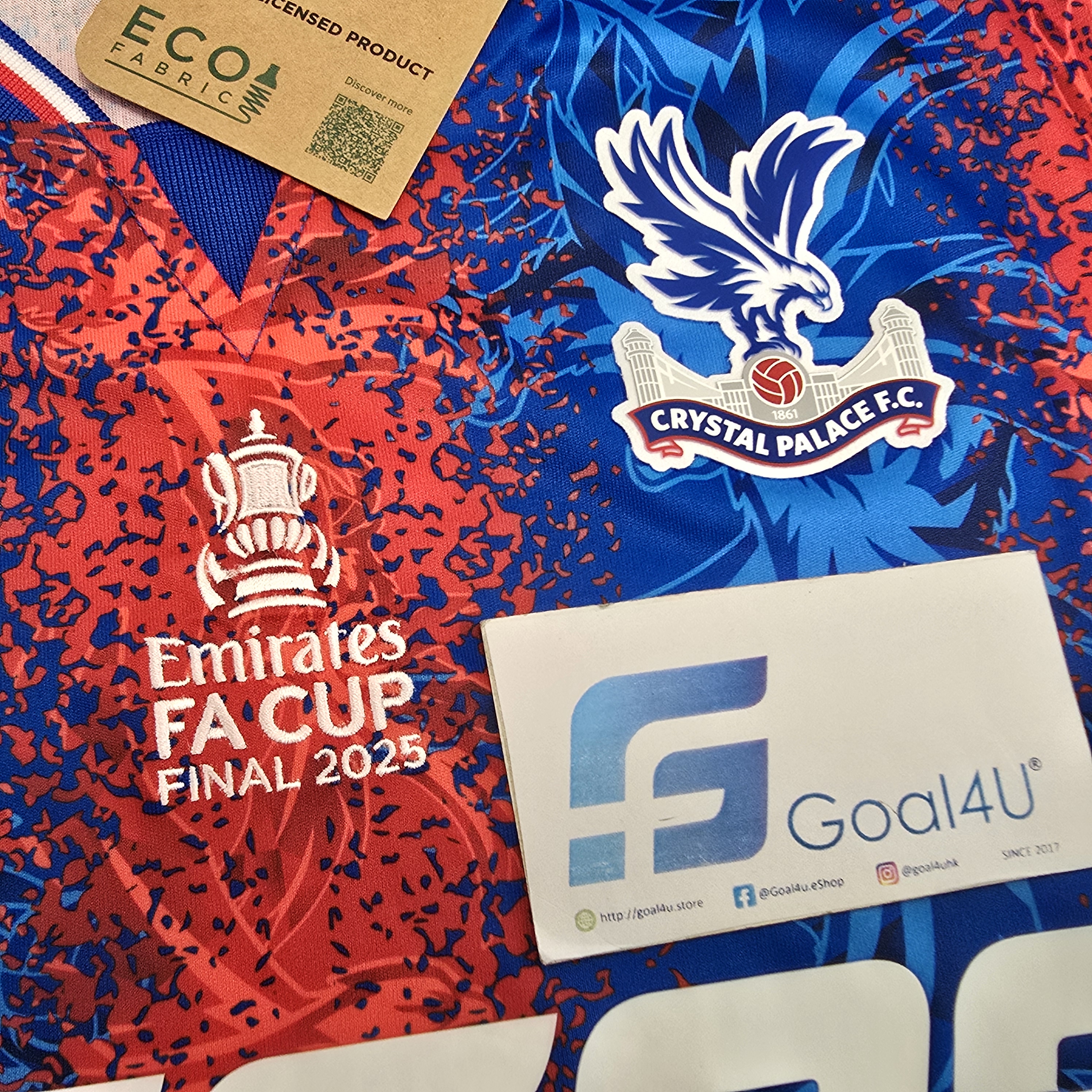 現貨L*1,預訂其他呎碼約3-4星期到港,敬請留意 🏆🔴🔵 **2025 英足盃冠軍紀念球衣震撼登場!** 為慶祝球隊奪得 2025 英格蘭足總盃,我們特別推出這款獨一無二的紅藍主場冠軍版球衣!球衣正面繡有英格蘭足總杯決賽紀念刺繡,永久記錄這一光輝時刻,絕對是球迷必入手的珍藏。 🔸 冠軍版專屬設計 🔸 正面繡有英足盃決賽紀念圖案 🔸 傳統紅藍主場配色 增值服務 加印原裝足總杯臂章 加印仿製球會杯賽字及衣袖贊助 (請於送貨頁備註欄填寫印字選擇) e.g. EZE #10 WHARTON #20 KAMADA #18 (日本代表鐮田大地) ⚽️ 為榮耀而穿,見證歷史時刻! 設計引人入勝,反映了球會的活力精神和身份認同。2024/25的水晶宮主場球衣以其鮮豔多彩的圖案脫穎而出,紅藍垂直條紋創造了充滿動感的視覺效果。 作為球隊慶祝史靴斯公園正式開放100週年的一部分,這款球衣在衣領後方還設有紀念印章。 球衣使用環保材料,確保優越的透氣性和卓越的舒適性,使球員在比賽中保持最佳狀態。協調的領口和袖口提供了風格上的對比和整潔的收尾。這件球衣是歸屬感和自豪支持的象徵,球迷將在整個球季中自豪地穿著它。 ~球隊隊徽 ~頸背“1924 SELHURST PARK 2024”象徵100週年字樣 ~修身設計,建議預大一碼 \#FACupWinners #英足盃冠軍 #冠軍紀念球衣 #紅藍戰士 #球迷珍藏 #adidasFootball 款式一覽 https://goal4u.store/t/CrystalPalace ⚠<注意事項>⚠ - 由於每部電子產品顯示器不同,均存在色差問題,如果對顏色比較在意,請謹慎選購 - 如訂單內包含預訂產品,訂單將於所有貨品到齊後一併發貨 - 除有預訂提示的貨品外,所有貨品均有現貨。確認款項後,1至3工作天內會發貨 - 有預訂提示的貨品,確認款項後,需大約3-4星期訂購到港(Pre-Order預訂產品除外)(以當時購買所顯示預購日子為準) ,如遇上缺貨,將退還已付訂金 - 運送路途遙遠,產品或未處於完美狀態,本店將盡力確保產品完好方會發貨