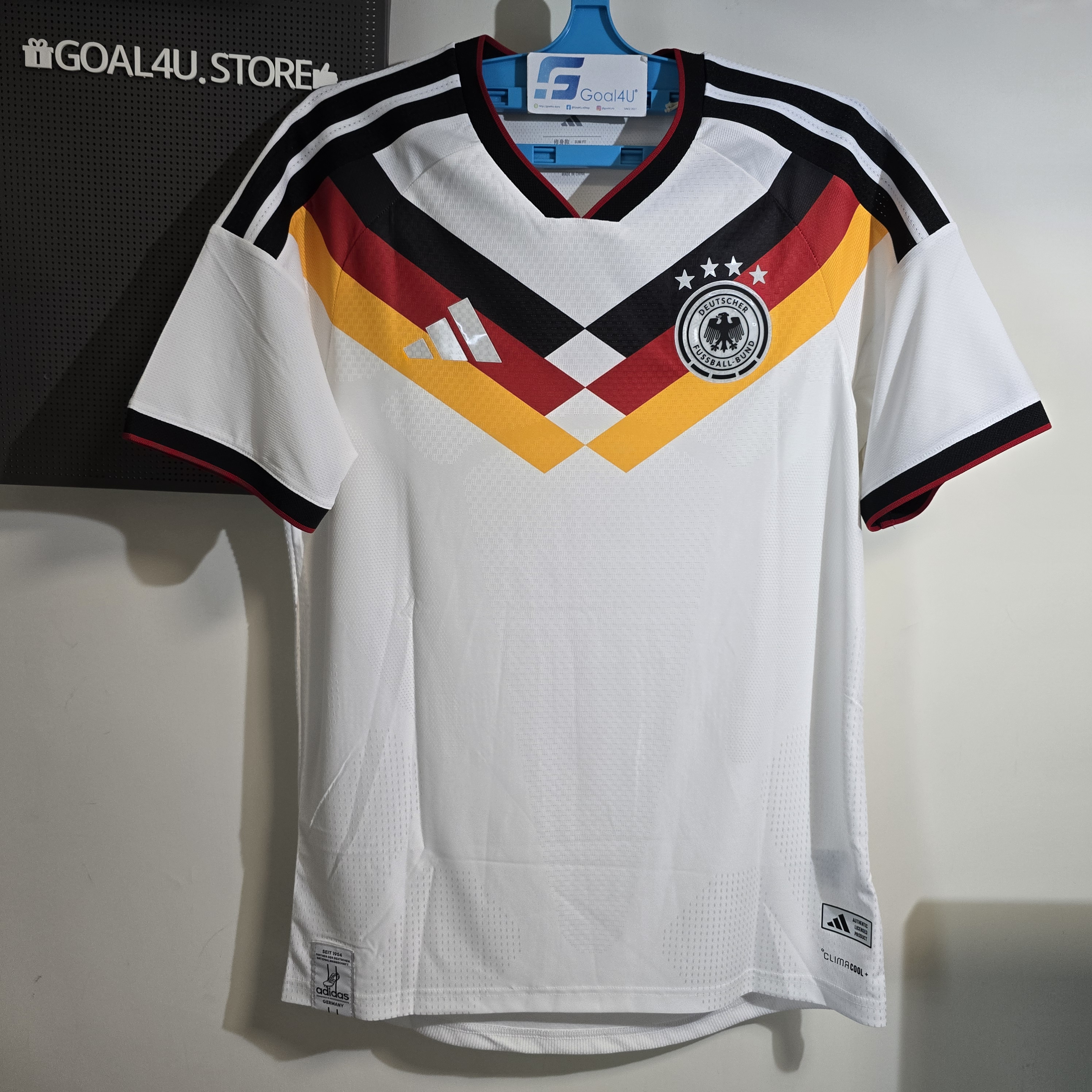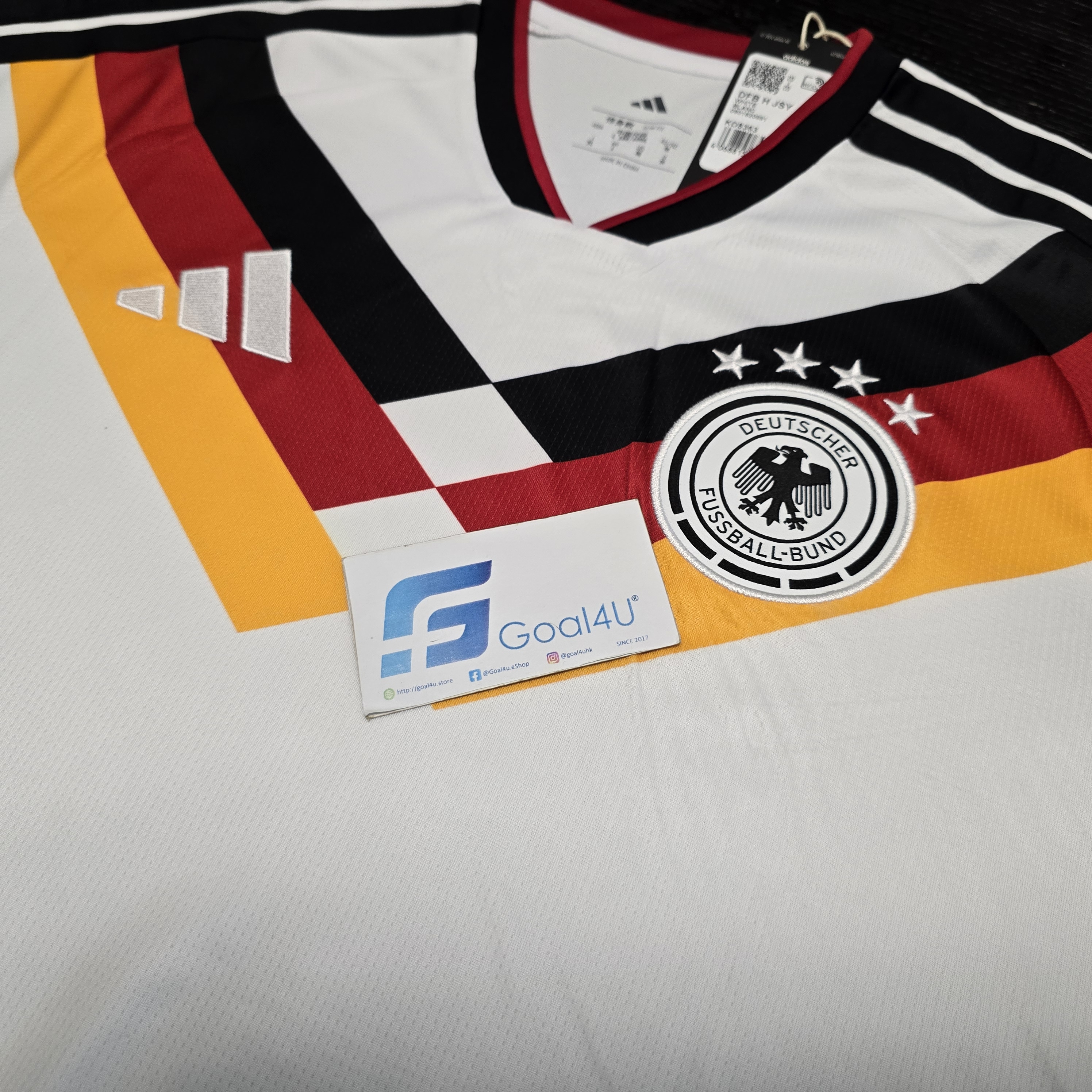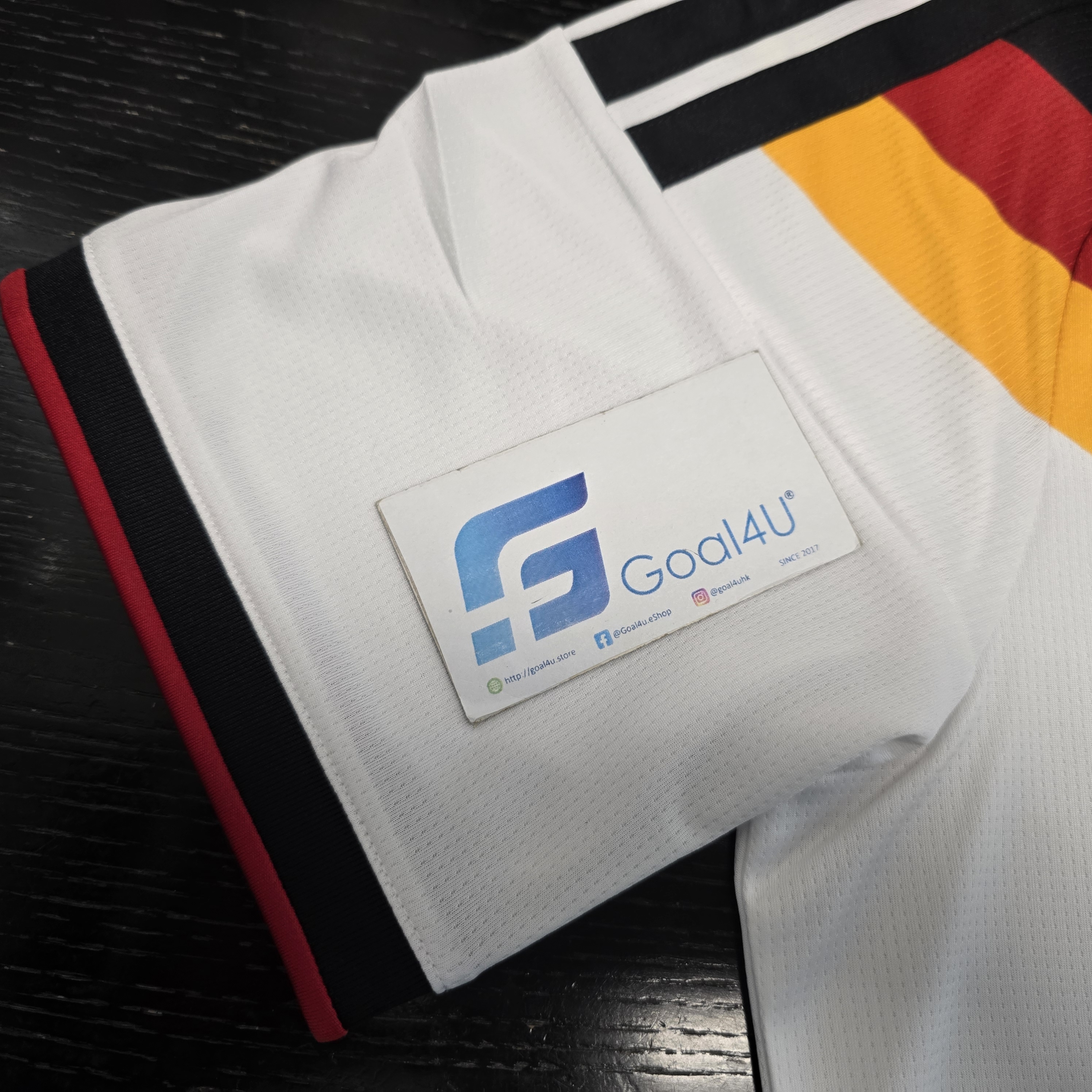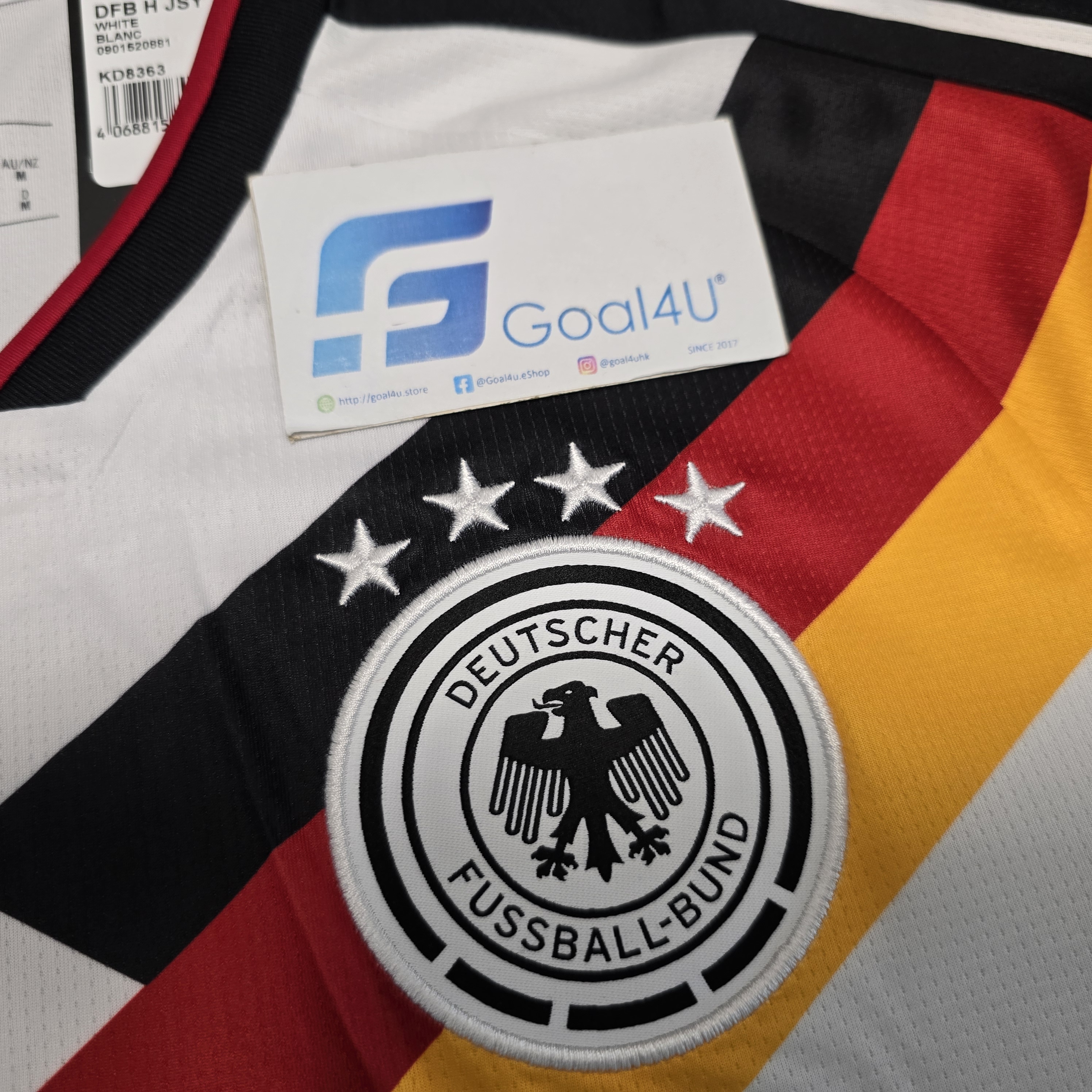 以下呎碼備有現貨,預訂其他呎碼約4星期到港,敬請留意 國際碼M (亞洲碼L)*1 國際碼L (亞洲碼XL)*1 國際碼L-XL (亞洲碼XXL)*1 ⚪⚫🟥🟨 【Germany 2026 主場球衣|向冠軍榮耀致敬的最後 adidas 戰袍】 🇩🇪✨ 2026 德國主場球衣以傳奇為靈感,致敬 1990 與 2014 世界盃冠軍戰袍。純白基底結合黑、紅、黃三色細節,象徵德國足球榮耀與國家精神。 🔥 經典再現 × 榮耀告別 這是 adidas 為德國隊打造的 最後一款球衣 —— 在 2027 年起 Nike 正式接手前,這件球衣成為一個時代的終章與紀念。 ⚪⚫【Germany 2026 主場球衣|CLIMACOOL 散熱科技 × 傳統再演】🔥 傳承與創新並行,**Germany 26 Home Jersey** 將德國足球的經典精神與現代科技完美融合,打造下一個時代的標誌性戰袍。 ✨ **特色亮點:** * 🇩🇪 **經典傳承設計**:融合德國戰袍的傳統細節與現代風格 * ❄️ **CLIMACOOL 散熱科技**:高效排汗與通風設計,保持清爽與專注 * 🧵 **Doubleknit 結構布料**:貼合身形、柔軟舒適、靈活耐穿 * 👕 **Slim Fit 修身版型**:俐落剪裁,貼合運動動態 * 🏷️ **EQT 經典領口設計**:增添復古格調與時尚細節 * 💧 **速乾科技面料**:有效管理汗水,持久乾爽 * 🦅 **刺繡 adidas 標誌與德國國徽**:展現正宗榮耀與細節質感 👕 **產品資料:** * 材質:100% 再生聚酯纖維 * 科技:CLIMACOOL 透氣散熱系統 * 版型:Slim Fit 修身剪裁 * 領型:EQT 領設計 * 顏色:White 白色 * 產品編號:KD8363 增值服務: 加印球員印字 (另購 https://www.goal4u.store/i/X2KP2rgAA) 2026世界杯外圍賽臂章 (另購 https://www.goal4u.store/i/T_lV_SgAA) 為榮耀而戰,為未來而生。穿上這件球衣,讓經典再度閃耀球場。 #Germany #adidasFootball #DieMannschaft #CLIMACOOL #FootballHeritage #德國戰袍 #RoadTo2026 款式一覽 https://goal4u.store/t/Germany ⚠<注意事項>⚠ - 由於每部電子產品顯示器不同,均存在色差問題,如果對顏色比較在意,請謹慎選購 - 如訂單內包含預訂產品,訂單將於所有貨品到齊後一併發貨 - 除有預訂提示的貨品外,所有貨品均有現貨。確認款項後,1至3工作天內會發貨 - 有預訂提示的貨品,確認款項後,需大約3-4星期訂購到港(Pre-Order預訂產品除外)(以當時購買所顯示預購日子為準) ,如遇上缺貨,將退還已付訂金 - 運送路途遙遠,產品或未處於完美狀態,本店將盡力確保產品完好方會發貨