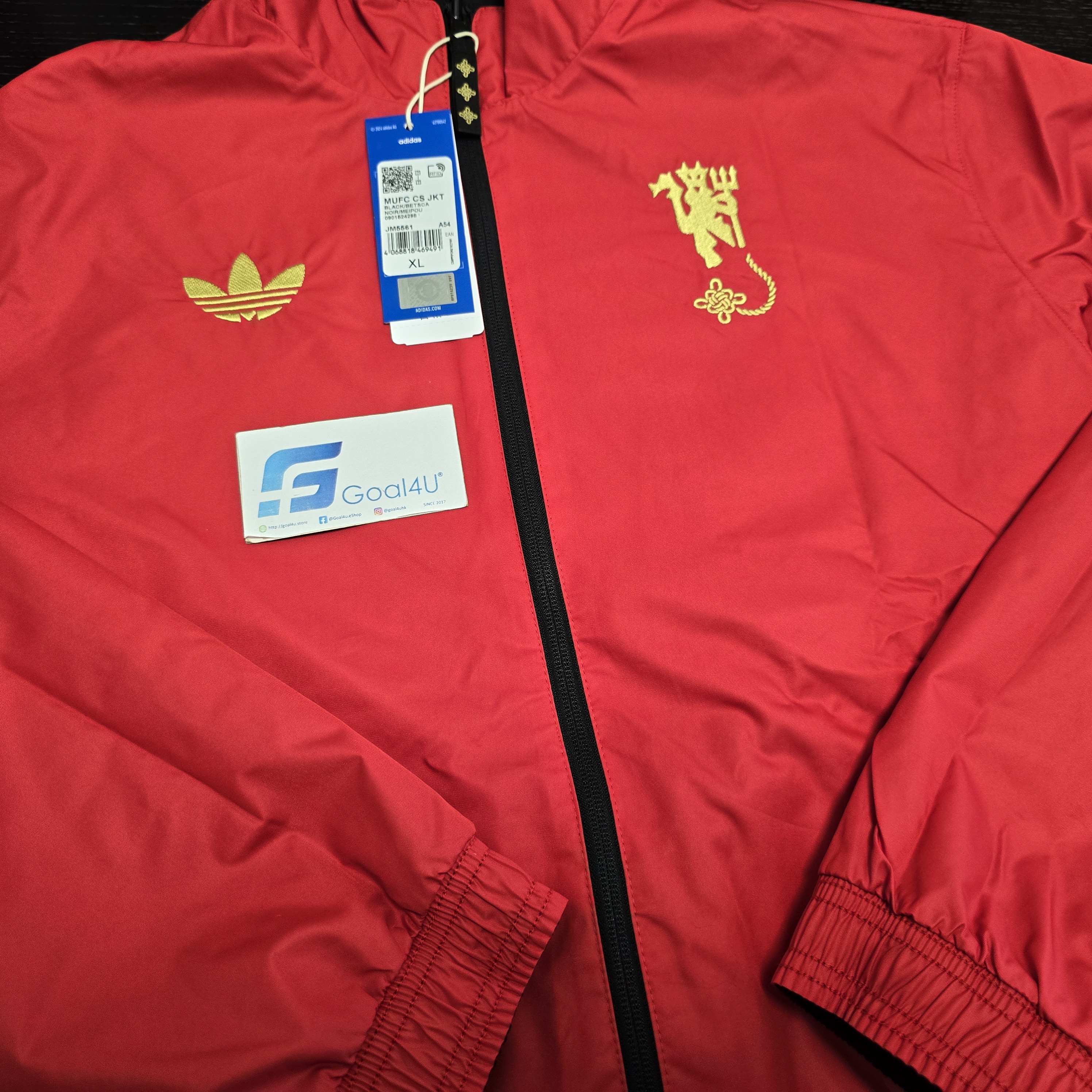 非現貨,預訂約3-4星期到貨,敬請留意 🧥⚽️【曼聯文化故事|雙面可穿夾克外套】⚽️🧥 一件外套,兩種風格 ✨ 呢款 **曼聯文化故事雙面可穿夾克**,將傳統中國藝術 🧧 同現代足球美學完美融合,向經典致敬之餘,同時展現摩登個性,無論比賽日定日常出街都一樣啱著。 🌿 adidas 三葉草品牌標識,延續經典運動精神 🪢 靈感源自「吉祥結」嘅醒目圖案,文化味十足 🧥 立領+拉鏈設計,造型俐落,易穿易襯 🔁 雙面可穿設計,隨心切換風格,一件頂兩件 👌 平紋面料+常規版型,活動自如又舒適 無論係為曼聯吶喊助威 🔴📣,定係漫步城市街頭,都能輕鬆展現你對足球嘅熱愛同獨特個性。 同 adidas 一齊,穿出足球精神 ⚽️🔥 #ManchesterUnited #曼聯 #文化故事系列 #雙面外套 #ReversibleJacket #三葉草 #adidasOriginals #吉祥結 #中西合璧 #球迷穿搭 #FootballStyle #StreetWear 款式一覽 https://goal4u.store/t/MUFC ⚠<注意事項>⚠ - 由於每部電子產品顯示器不同,均存在色差問題,如果對顏色比較在意,請謹慎選購 - 如訂單內包含預訂產品,訂單將於所有貨品到齊後一併發貨 - 除有預訂提示的貨品外,所有貨品均有現貨。確認款項後,1至3工作天內會發貨 - 有預訂提示的貨品,確認款項後,需大約3-4星期訂購到港(Pre-Order預訂產品除外)(以當時購買所顯示預購日子為準) ,如遇上缺貨,將退還已付訂金 - 運送路途遙遠,產品包裝或未處於完美狀態,本店將盡力確保產品完好方會發貨