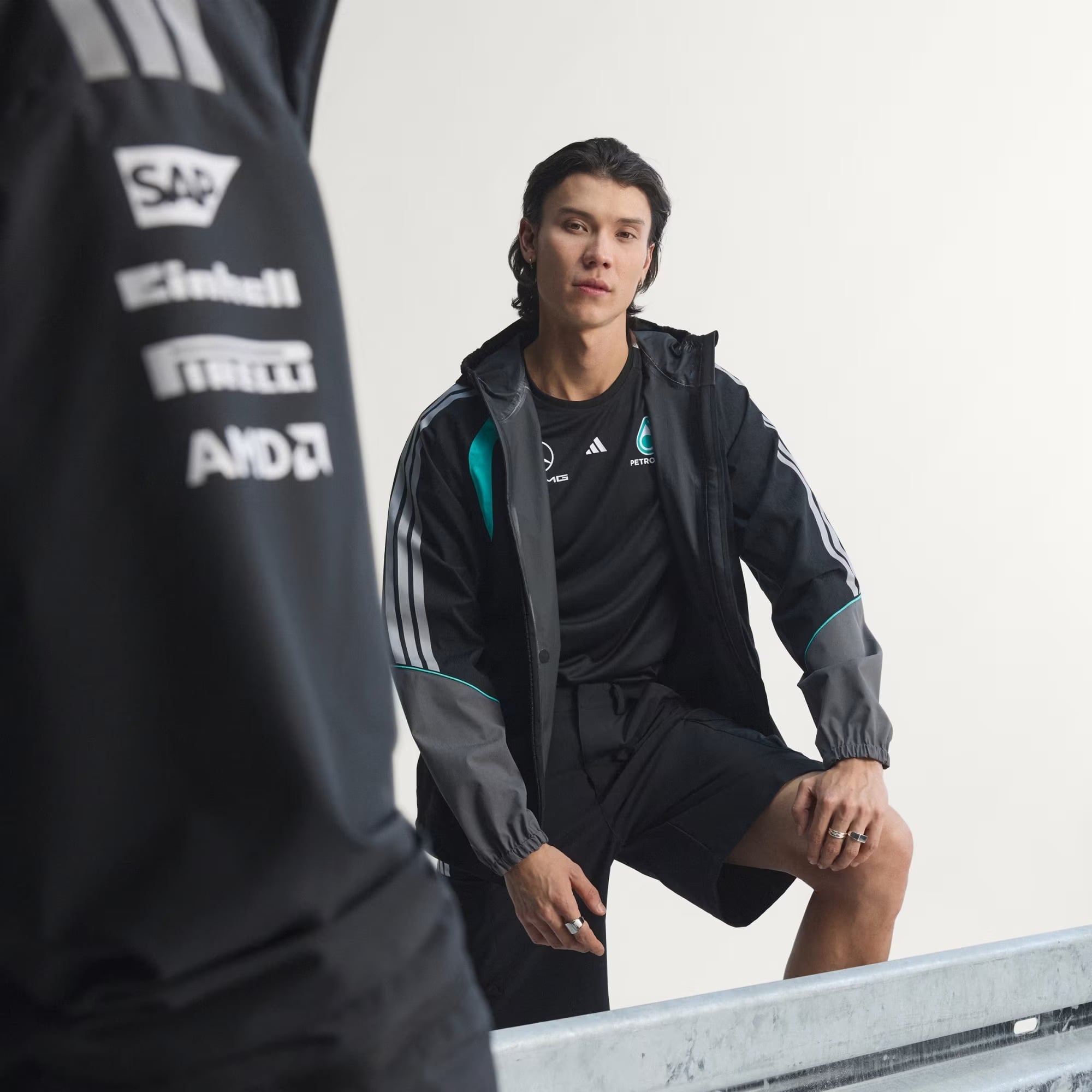 Adidas F1 Mercedes Benz 平治車隊 2026 技師黑色防風雨外套 KE5475