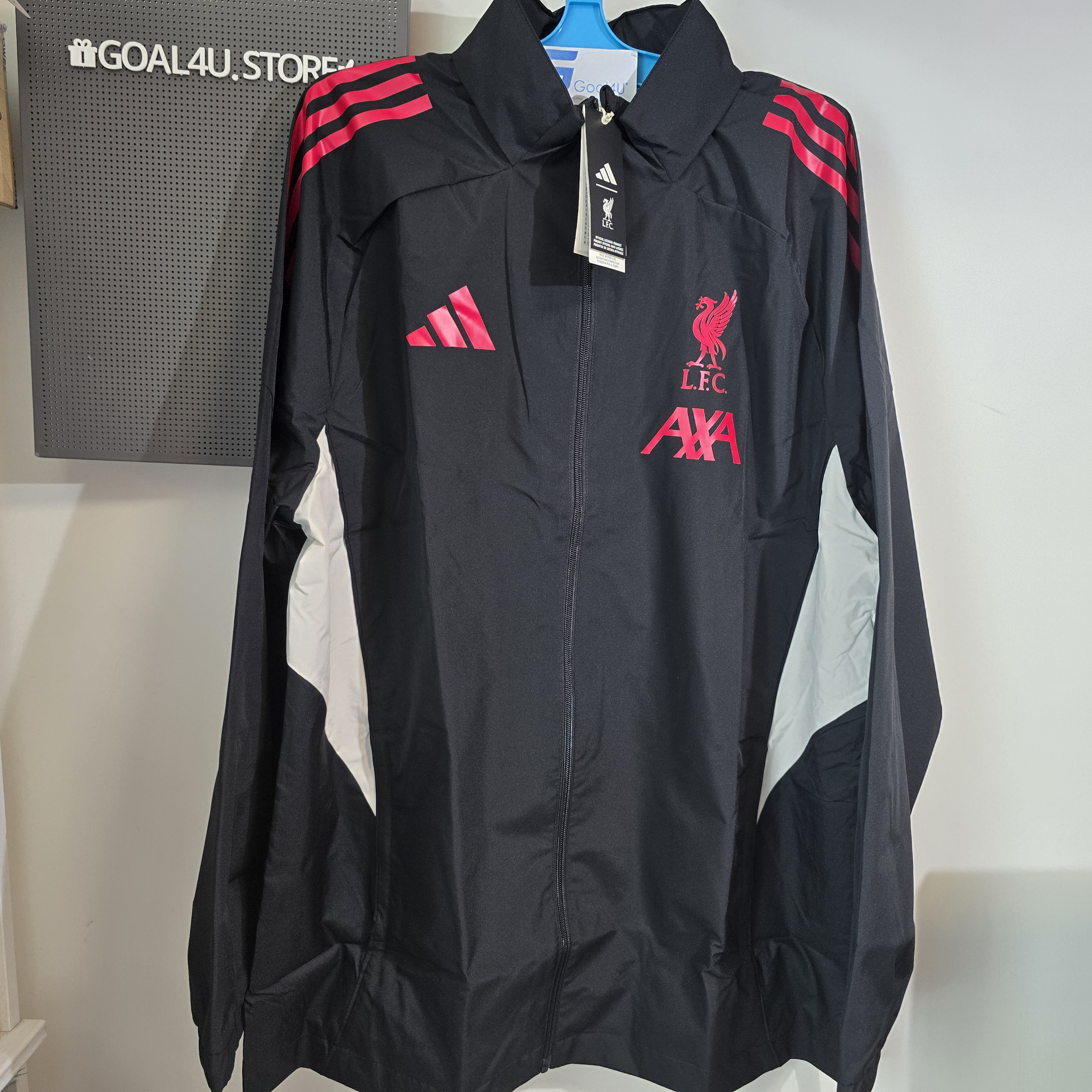非現貨,預訂約3-4星期到港,敬請留意 🖤🌧️ **LFC 25/26 全天候防風外套(黑色)** 風雨無阻,繼續鍛鍊!由 adidas 設計,專為 AXA Training Centre 訓練場而設。 這款全天候訓練外套是利物浦球員對抗風雨的利器。輕盈剪裁搭配防潑水面料,即使迎著風雨,也能保持訓練節奏。連帽設計可收納入衣領,機能與外型兼備,印上紅軍會徽,展現鐵血信仰。 🧥 **產品特色:** ▪️ Regular fit 標準剪裁 ▪️ 拉鍊前襟配彈性調節帽 ▪️ 100% 再生聚酯纖維 ▪️ 防潑水塗層 ▪️ 可收納式帽子設計 ▪️ 印製 adidas 標誌、三間及 LFC 會徽 ▪️ 前側插袋設計 🎨 顏色:Black 🔖 商品編號:JV6553 🌬️ **由訓練場到日常街頭,風雨中亦步履不停。** \#LiverpoolFC #LFC #全天候外套 #風雨訓練 #adidasFootball #Tiro25 #YNWA 款式一覽 https://goal4u.store/t/Liverpool?cat=all ⚠<注意事項>⚠ - 由於每部電子產品顯示器不同,均存在色差問題,如果對顏色比較在意,請謹慎選購 - 如訂單內包含預訂產品,訂單將於所有貨品到齊後一併發貨 - 除有預訂提示的貨品外,所有貨品均有現貨。確認款項後,1至3工作天內會發貨 - 有預訂提示的貨品,確認款項後,需大約3-4星期訂購到港(Pre-Order預訂產品除外)(以當時購買所顯示預購日子為準) ,如遇上缺貨,將退還已付訂金 - 運送路途遙遠,產品包裝或未處於完美狀態,本店將盡力確保產品完好方會發貨
