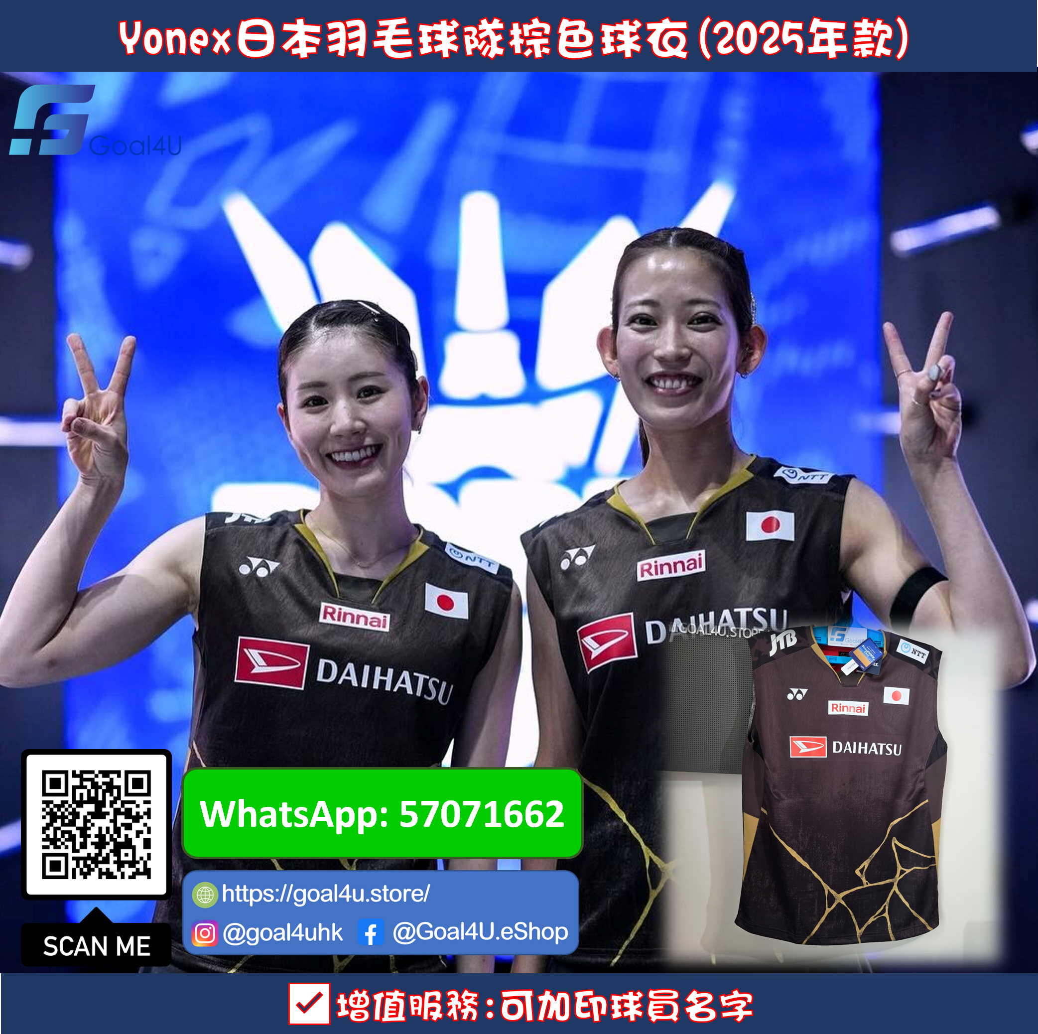非現貨,預訂約3-4星期到港, 敬請留意 可選男女裝短袖或背心 正面印有日本隊徽及贊助商標 可選擇背後加印球員名字 (請於送貨頁備註欄填寫印字選擇) 志田千陽 C SHIDA 松山奈未 N MATSUYAMA 五十嵐有紗 A IGARASHI 山口茜 Y YAMAGUCHI 10731 款式一覽 https://goal4u.store/t/Badminton ⚠<注意事項>⚠ - 由於每部電子產品顯示器不同,均存在色差問題,如果對顏色比較在意,請謹慎選購 - 如訂單內包含預訂產品,訂單將於所有貨品到齊後一併發貨 - 除有預訂提示的貨品外,所有貨品均有現貨。確認款項後,1至3工作天內會發貨 - 有預訂提示的貨品,確認款項後,需大約3-4星期訂購到港(Pre-Order預訂產品除外)(以當時購買所顯示預購日子為準) ,如遇上缺貨,將退還已付訂金 - 運送路途遙遠,產品或未處於完美狀態,本店將盡力確保產品完好方會發貨 款式一覽 https://goal4u.store/t/Badminton ⚠<注意事項>⚠ - 由於每部電子產品顯示器不同,均存在色差問題,如果對顏色比較在意,請謹慎選購 - 如訂單內包含預訂產品,訂單將於所有貨品到齊後一併發貨 - 除有預訂提示的貨品外,所有貨品均有現貨。確認款項後,1至3工作天內會發貨 - 有預訂提示的貨品,確認款項後,需大約3-4星期訂購到港(Pre-Order預訂產品除外)(以當時購買所顯示預購日子為準) ,如遇上缺貨,將退還已付訂金 - 運送路途遙遠,產品或未處於完美狀態,本店將盡力確保產品完好方會發貨