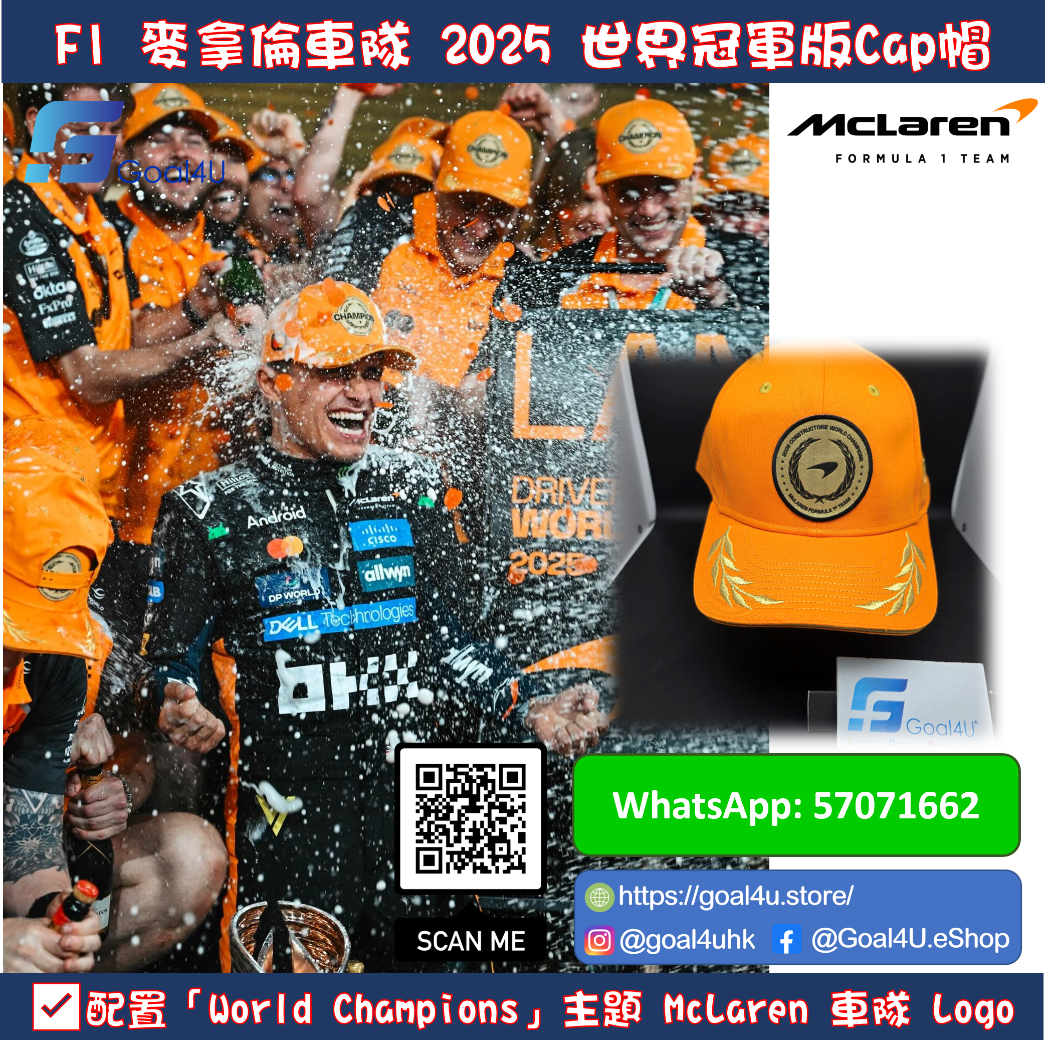 現貨發售,售完即止 🧡🏆 **【McLaren 車隊|2025 世界冠軍版 9FIFTY Cap】** 以經典橙色呈現 2025 賽季的榮耀時刻,這款 **McLaren 世界冠軍特別版帽款** 將紀念元素與街頭質感完美融合。帽舌繡上象徵勝利的桂冠圖案,正面配置「World Champions」主題 McLaren 車隊 Logo,彰顯冠軍風采。 產品特色: ✨ 世界冠軍特別版設計 🧡 標誌性 McLaren 橙色配色 👑 帽舌桂冠刺繡 🔶 正面 World Champions McLaren Logo ✔️ 2025 賽季車隊官方授權 🌿 舒適布料:97% Cotton、3% Spandex 🔥 車迷必收,紀念冠軍之年! #McLaren #F1 #WorldChampions #9FIFTY #NewEra #MCL60 #TeamPapaya #F1Merch #賽車帽 #車迷必備 款式一覽 https://goal4u.store/t/McLaren?cat=all ⚠<注意事項>⚠ - 由於每部電子產品顯示器不同,均存在色差問題,如果對顏色比較在意,請謹慎選購 - 如訂單內包含預訂產品,訂單將於所有貨品到齊後一併發貨 - 除有預訂提示的貨品外,所有貨品均有現貨。確認款項後,1至3工作天內會發貨 - 有預訂提示的貨品,確認款項後,需大約3-4星期訂購到港(Pre-Order預訂產品除外)(以當時購買所顯示預購日子為準) ,如遇上缺貨,將退還已付訂金 - 運送路途遙遠,產品包裝或未處於完美狀態,本店將盡力確保產品完好方會發貨