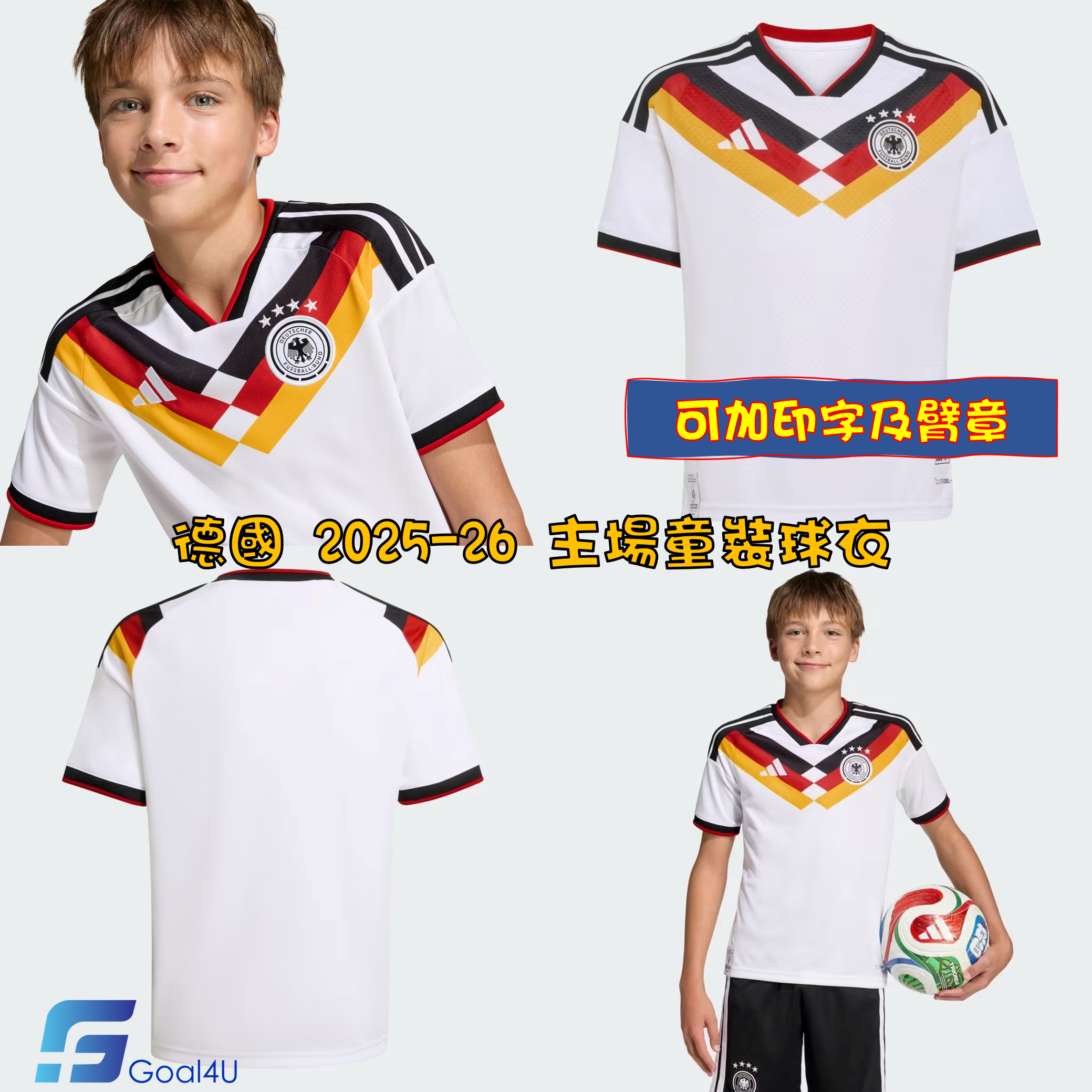 ⚪⚫Adidas Germany 德國 2025-26 童裝主場球衣 (可加印球員印字及臂章) JZ4560