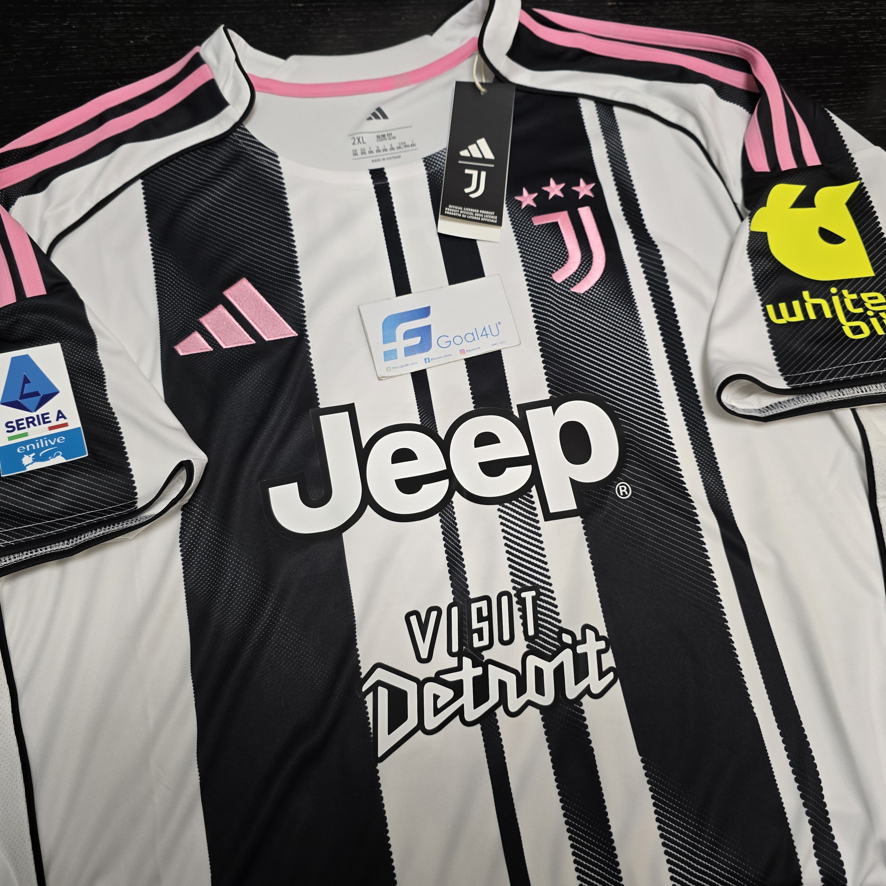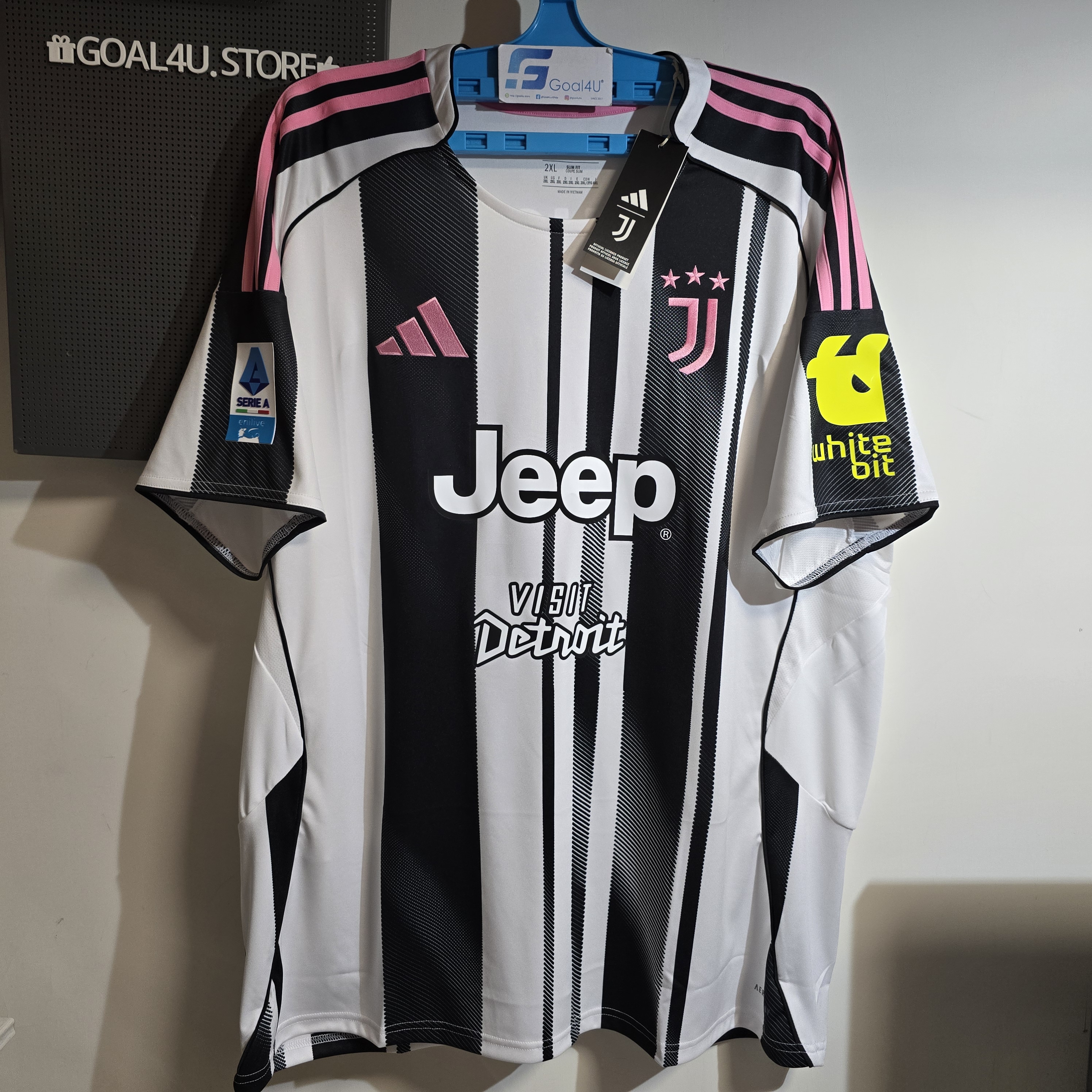 非現貨,預訂約3-4星期到貨,敬請留意 💗⚫⚪ **祖雲達斯 25/26 全新主場球衣登場!經典傳統 × 時尚新視覺!** 全新一季,adidas 為祖雲達斯主場球衣帶來驚喜設計!打破以往直線條紋的風格,以**不規則幾何條紋**重新演繹斑馬軍團的經典白黑色系,並首次融入粉紅色細節,展現出球隊革新與傳統並重的態度💗 👕 **球衣特色:** ✅ Slim Fit 修身剪裁,穿著更貼身合體 ✅ 採用 100% 再生聚酯纖維製成,環保又舒適 ✅ 配備 AEROREADY 吸濕排汗科技,時刻保持乾爽 ✅ adidas 經典標誌 + Juventus 精緻刺繡會徽 ✅ 適合觀賽、日常穿搭、收藏之選! 讓你今季以嶄新造型支持心愛球隊,穿上它,一起為 Juve 加油吶喊! 增值服務: ~可加印歐聯臂章 (另購 https://bit.ly/3rfhniC) ~可加印意甲章 (另購 https://bit.ly/3P1m9uN) ~可加印字/贊助 (另購 https://www.goal4u.store/i/UmYBUzgAA) \#Juventus #祖雲達斯 #JuventusHomeKit #斑馬軍團 #JuventusHK #adidasFootball #25\_26球季 #JuveStyle #粉紅條紋 #足球時尚 #球迷之選 #AEROREADY #足球球衣收藏 JJ4320 款式一覽 https://goal4u.store/t/Juventus ⚠<注意事項>⚠ - 由於每部電子產品顯示器不同,均存在色差問題,如果對顏色比較在意,請謹慎選購 - 如訂單內包含預訂產品,訂單將於所有貨品到齊後一併發貨 - 除有預訂提示的貨品外,所有貨品均有現貨。確認款項後,1至3工作天內會發貨 - 有預訂提示的貨品,確認款項後,需大約3-4星期訂購到港(Pre-Order預訂產品除外)(以當時購買所顯示預購日子為準) ,如遇上缺貨,將退還已付訂金 - 運送路途遙遠,產品包裝或未處於完美狀態,本店將盡力確保產品完好方會發貨