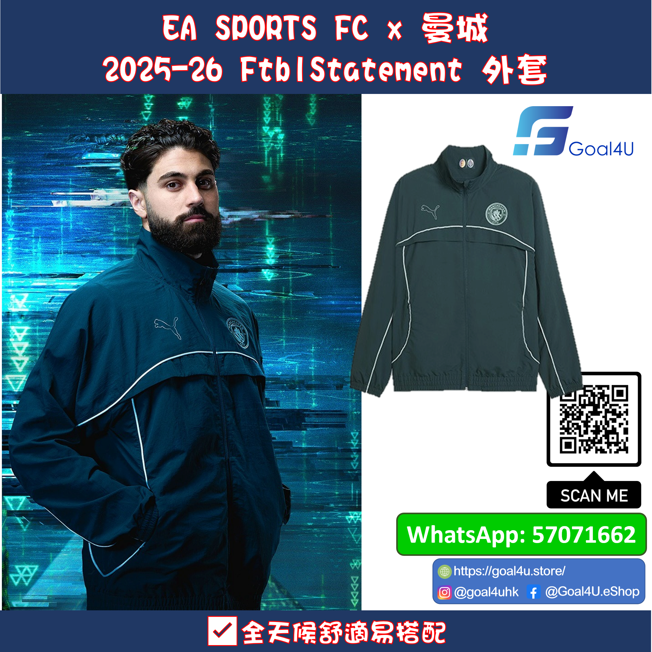 非現貨,預訂約4星期到港, 敬請留意 💙【曼城 2025/26 FtblStatement 外套 💫】 以型格方式支持你最愛嘅球隊!呢款 曼城 FtblStatement 外套 採用 寬鬆剪裁,全天候舒適又易襯。胸前綴有 經典曼城會徽 及 PUMA 標誌,配上前幅與袖位嘅 時尚滾邊設計,展現運動與街頭風嘅完美融合。⚡️ 特別加入 EA SPORTS 標誌,為整體造型增添獨特細節。無論場內場外,都能展現藍月亮球迷嘅型格態度。💪 建議配搭同系列 FtblStatement 長褲,打造完整造型。 #ManchesterCity #曼城 #PUMA #FtblStatement #藍月亮 #EAFC #運動時尚 #Goal4uStore 款式一覽 https://goal4u.store/t/ManchesterCity?cat=all ⚠<注意事項>⚠ - 由於每部電子產品顯示器不同,均存在色差問題,如果對顏色比較在意,請謹慎選購 - 如訂單內包含預訂產品,訂單將於所有貨品到齊後一併發貨 - 除有預訂提示的貨品外,所有貨品均有現貨。確認款項後,1至3工作天內會發貨 - 有預訂提示的貨品,確認款項後,需大約3-4星期訂購到港(Pre-Order預訂產品除外)(以當時購買所顯示預購日子為準) ,如遇上缺貨,將退還已付訂金 - 運送路途遙遠,產品包裝或未處於完美狀態,本店將盡力確保產品完好方會發貨
